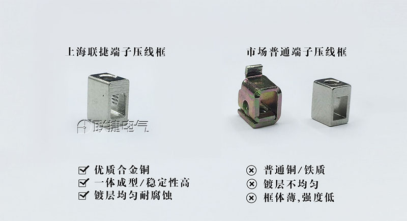 除改进管理措施外,还应提高电子元器件的采购质量,采用在使用期内不检修或少检修的电气设备,这将会使供电可靠性大幅度的进行提高。上海联捷电气定位中高档端子连接器,为了降低电气设备的检修频率,端子排皆采用PA66或PC材质,阻燃等级控制在V0,五金件也采取高规格材质,与市场同类型端子相比,用料扎实,电气性能高 (如下图所示) 。