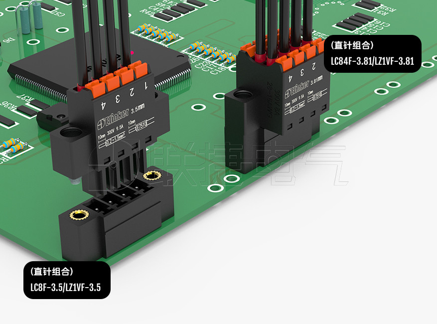 插头插座紧密结合,针距小,节省空间;