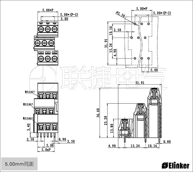 直焊式接线端子 焊接式接线端子 三层接线端子 绿色接线端子 5.08接线端子