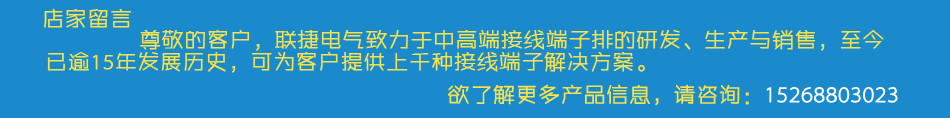 品牌是企业的外在形象,品牌影响力则是衡量企业价值高低的与否,联捷电气坚信,通过不断完善端子连接技术,创新产品,加大推广力度。不仅对于自身有利,对于行业的发展也能起到积极的推动作用。