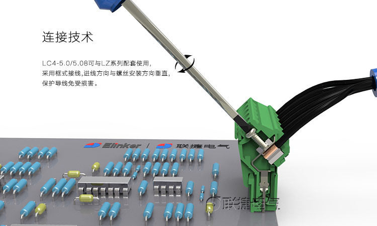 使用正面接线,螺丝刀拧转方向与进线方向平行;
