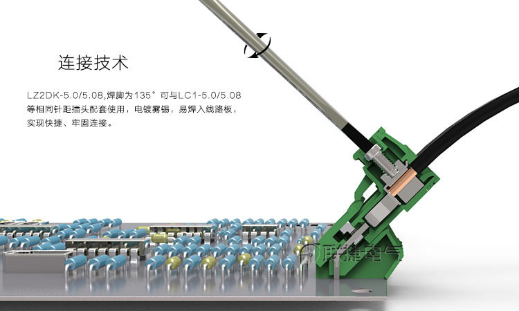焊针呈135°,为多角度连接提供可能,电镀雾锡,可焊接于线路板;